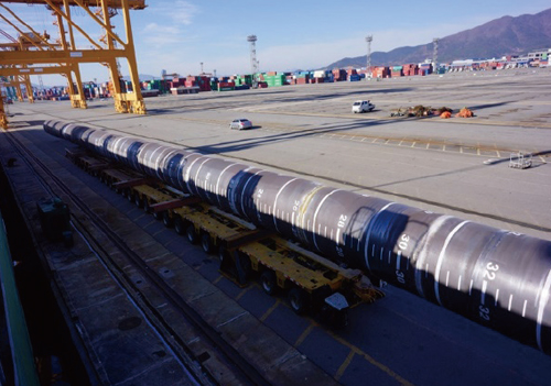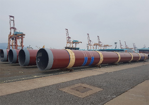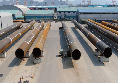 Manufacturing large-diameter steel pipes and heavy assembly structures (pin pile, jacket leg, etc.), providing point-to-point service according to customer need, successful export and import through Gwangyang Port, successful raw material supply from POSCO, etc. -> delivery and cost competitiveness